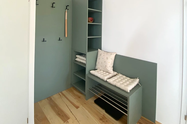 Gut durchdacht und funktional: Die kompakten Garderoben bieten genügend Platz für Jacken, Schuhe und Accessoires – alles ordentlich verstaut und griffbereit.